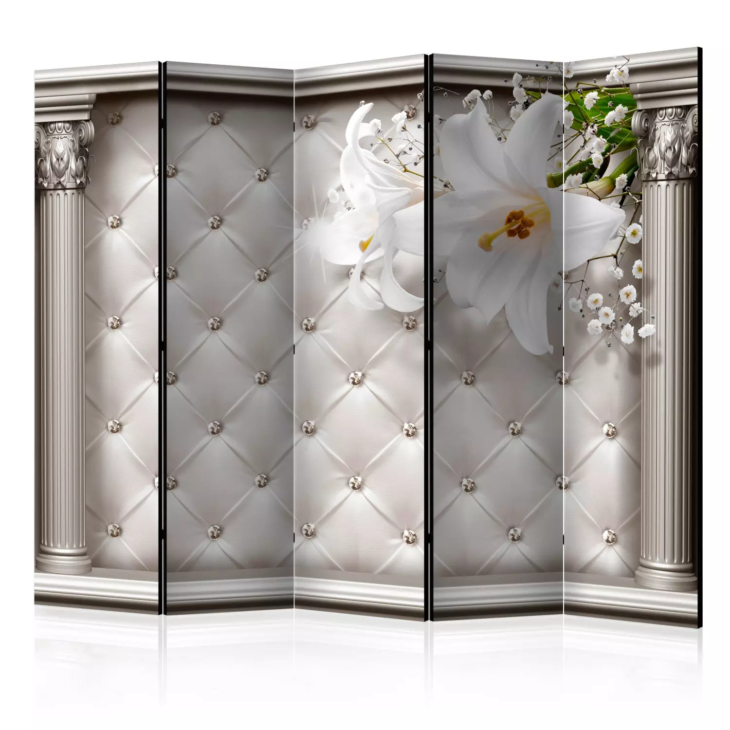 Paravent décoratif élégant avec impression Full HD sur tissu non-tissé et cadre en bois robuste. Disponible en plusieurs formats (3, 4 ou 5 panneaux), recto ou recto-verso, avec ou sans roues. Léger, stable et prêt à l’emploi idéal pour structurer vos espaces avec style.