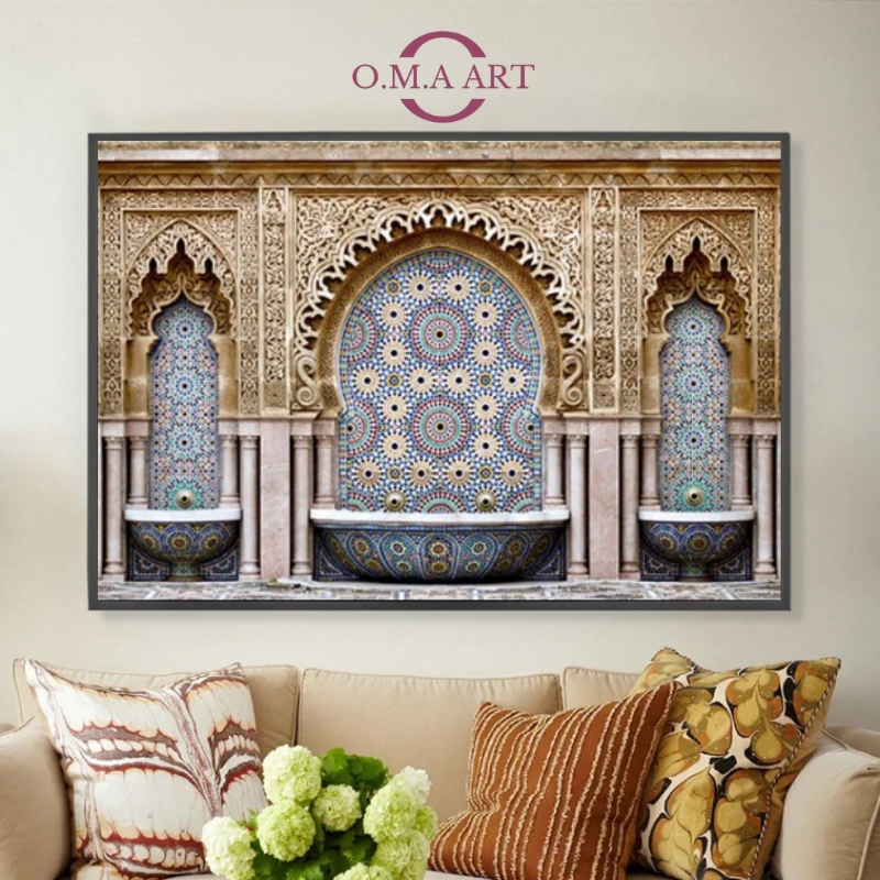 Ce tableau marocain est une pièce décorative authentique qui reflète la richesse culturelle, l’élégance artisanale et la beauté intemporelle du Maroc. Chaque œuvre capture l’âme d’un patrimoine unique à travers ses détails raffinés, ses couleurs chaleureuses et ses scènes évocatrices de traditions ancestrales.