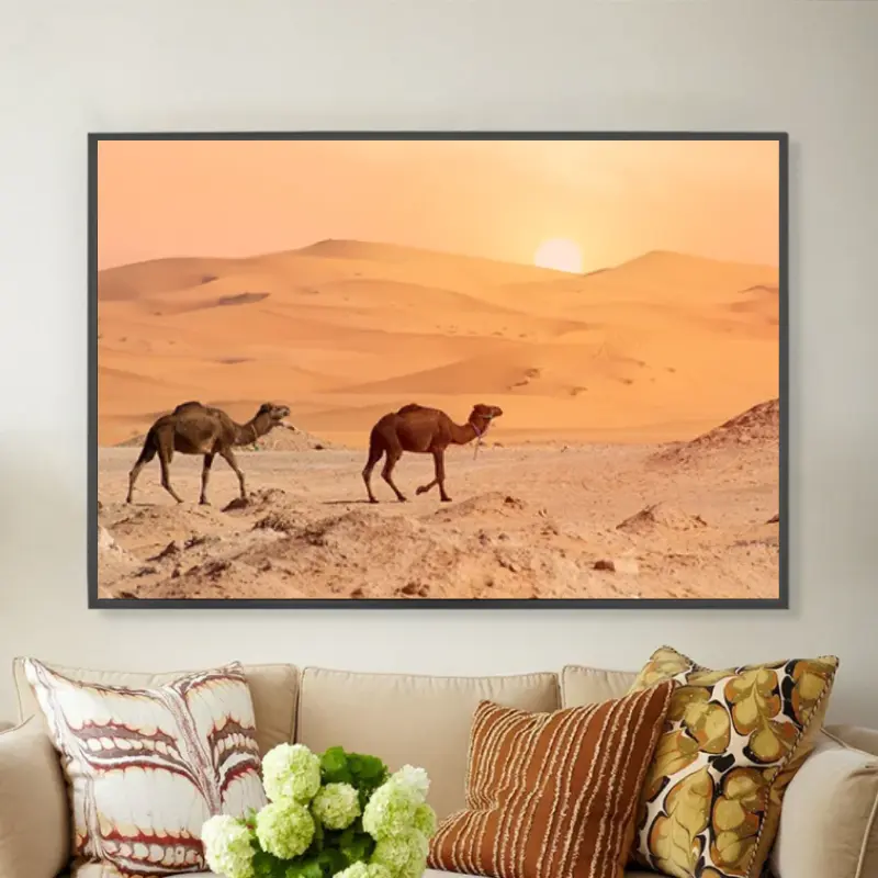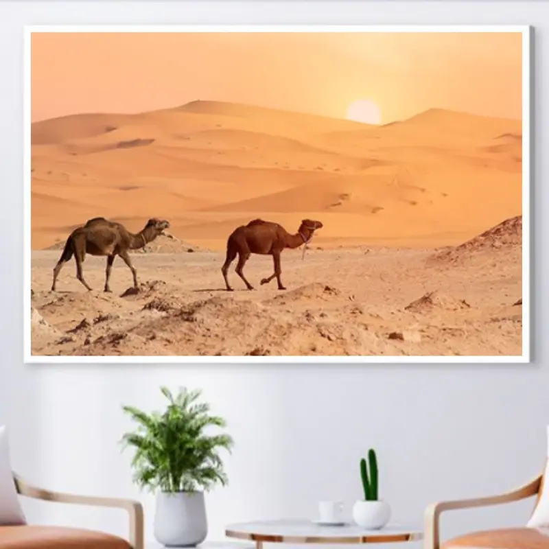 Que ce soit des paysages désertiques, des kasbahs majestueuses, des cavaliers de fantasia ou des scènes de vie traditionnelle, ce tableau apporte une atmosphère chaleureuse et inspirante à votre intérieur.