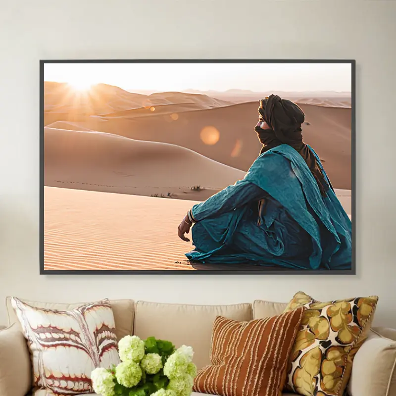 Soyez le premier à laisser votre avis sur “Tableau désertique – Nomade au coucher du soleil”