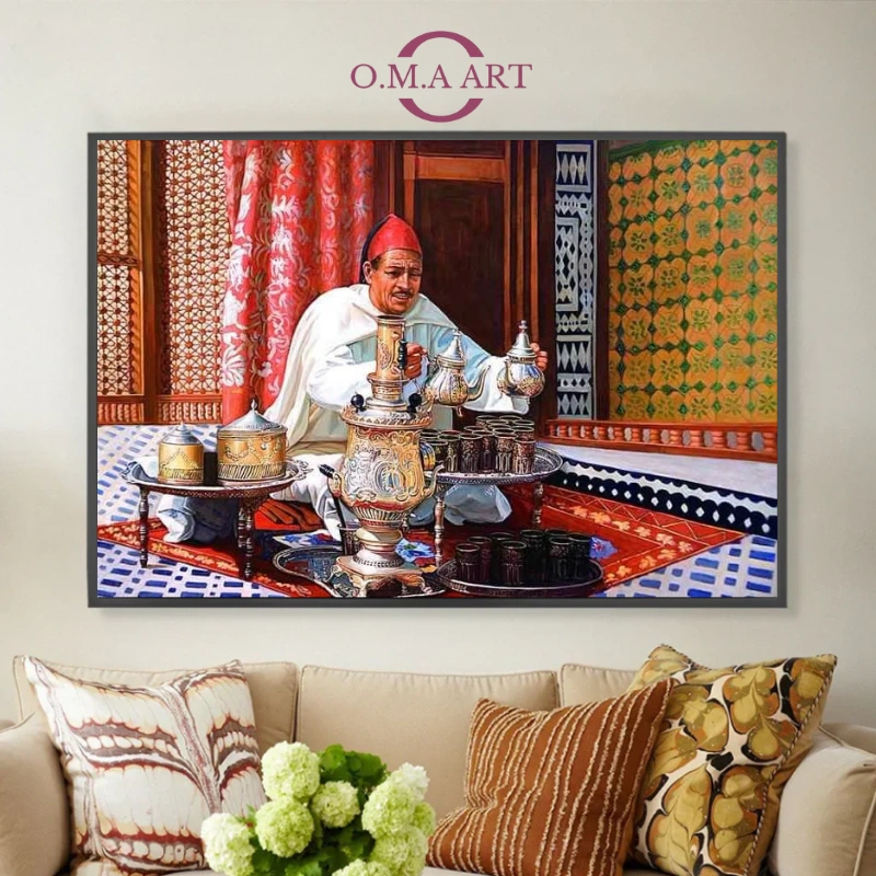 Ce tableau marocain est une pièce décorative authentique qui reflète la richesse culturelle, l’élégance artisanale et la beauté intemporelle du Maroc. Chaque œuvre capture l’âme d’un patrimoine unique à travers ses détails raffinés, ses couleurs chaleureuses et ses scènes évocatrices de traditions ancestrales.