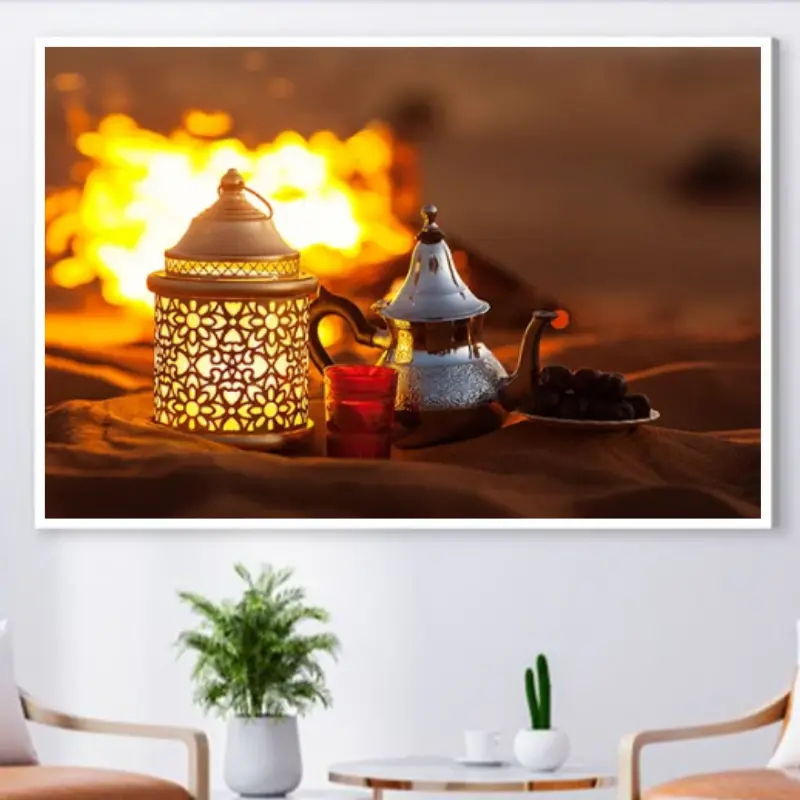 Tableau oriental chaleureux – Ambiance de désert et hospitalité arabe